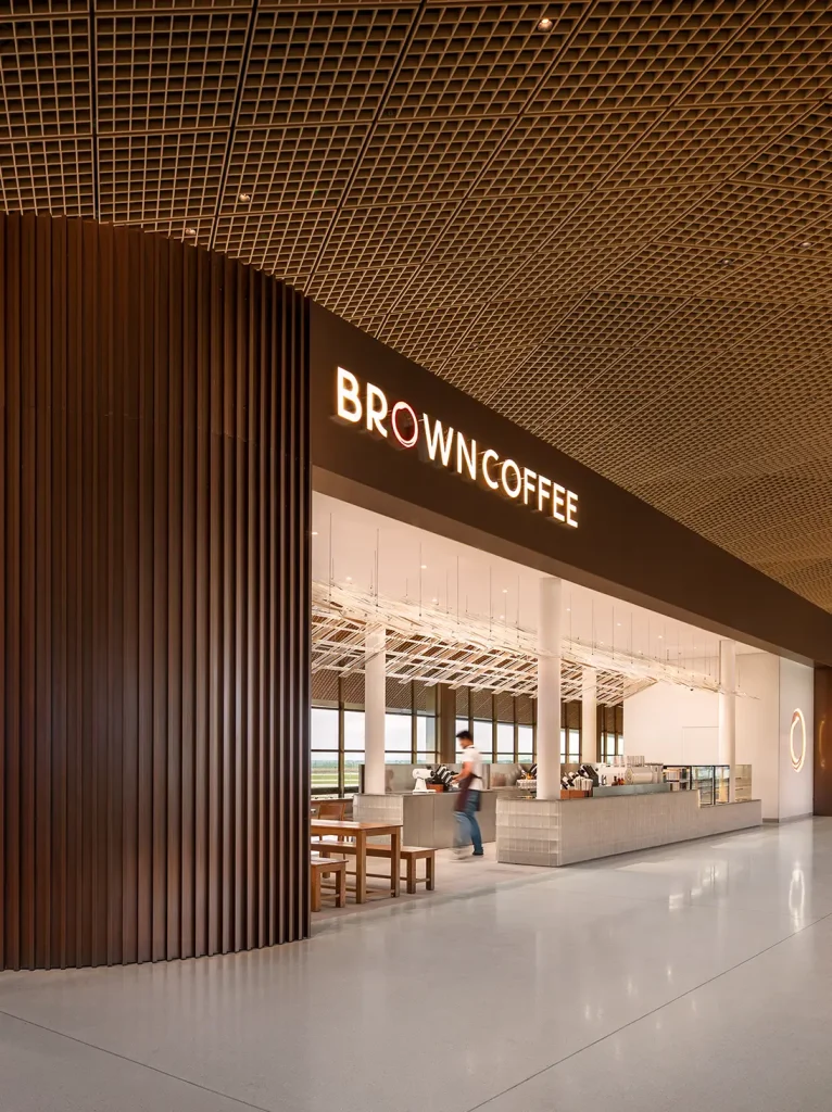HKA + Partners was tasked with translating Brown Coffee’s brand values of comfort, craft, and community into a design that resonates within an international airport context. The goal was to create an environment that is functional, fluid, and deeply rooted in local meaning.