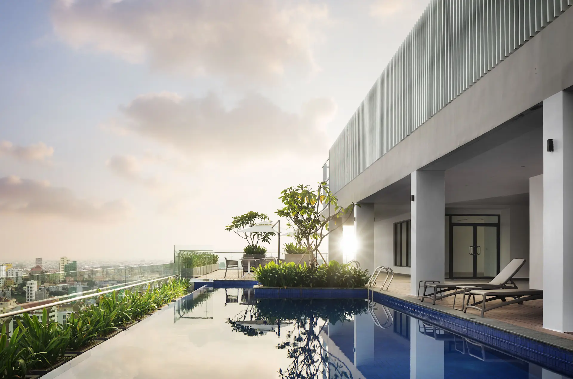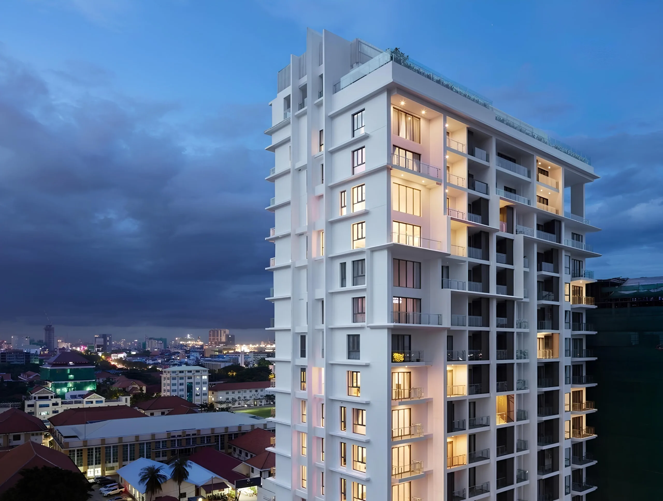 Embassy Residence is conceived as an urban retreat in the heart of Phnom Penh, designed to provide residents with a calm and welcoming environment above the energy of the city. The architecture balances clean contemporary lines with natural textures, creating a residential experience that feels both modern and grounded.