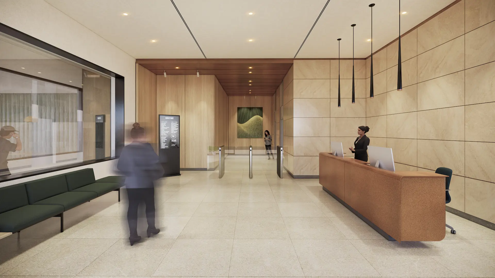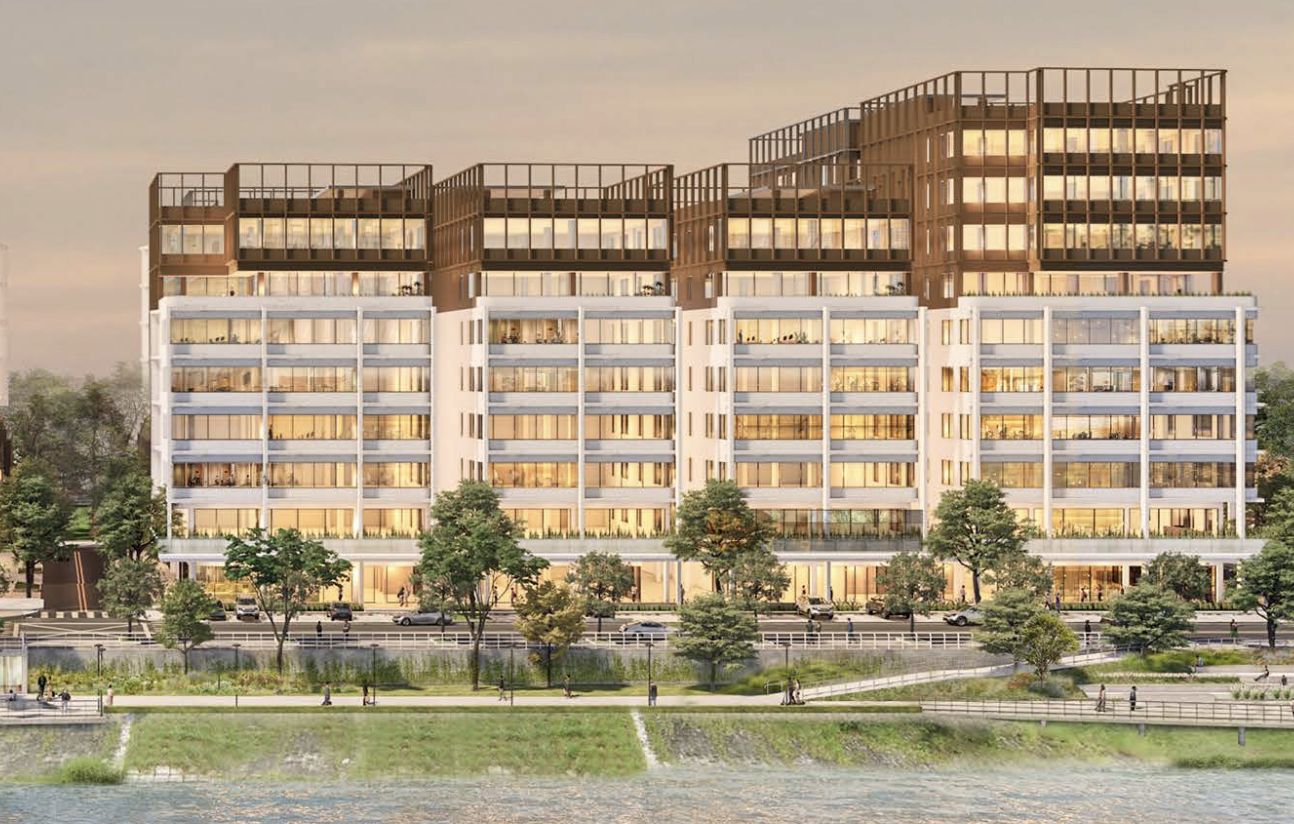 The first phase of Norea Central focuses on workplace innovation, designing open, flexible layouts that can support private offices, co-working, collaborative spaces, and outdoor working terraces. Generous glazing frames uninterrupted views towards the river and skyline, while circulation and shared spaces are arranged to encourage community, movement, and wellbeing throughout the building.