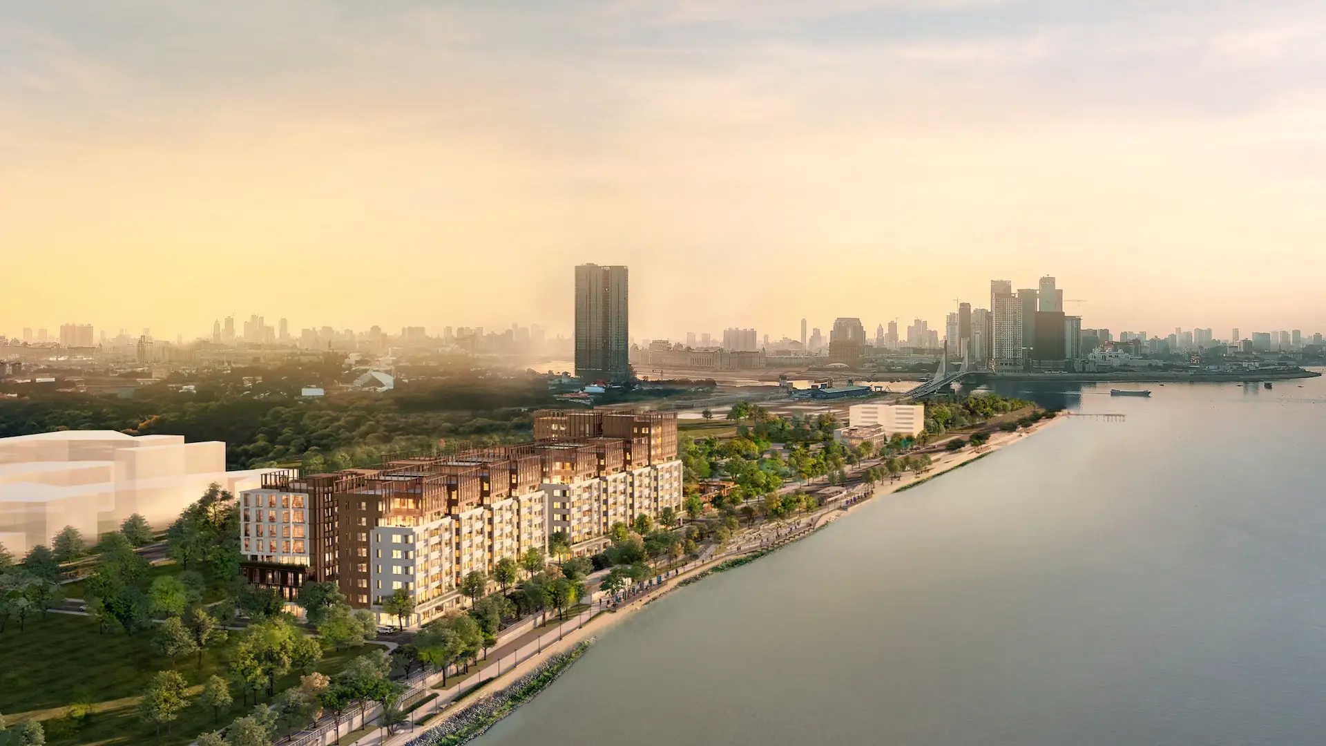 A contemporary commercial hub on the Mekong River waterfront, designed to transform the workplace experience with innovative office spaces, retail, and leisure offerings