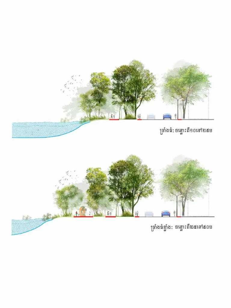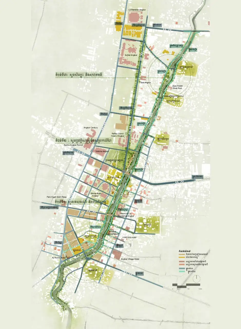 A large scale landscape regeneration project positioned at the heart of Siem Reap, transforming the river corridor into a civic park system where ecology, culture and public life coexist.